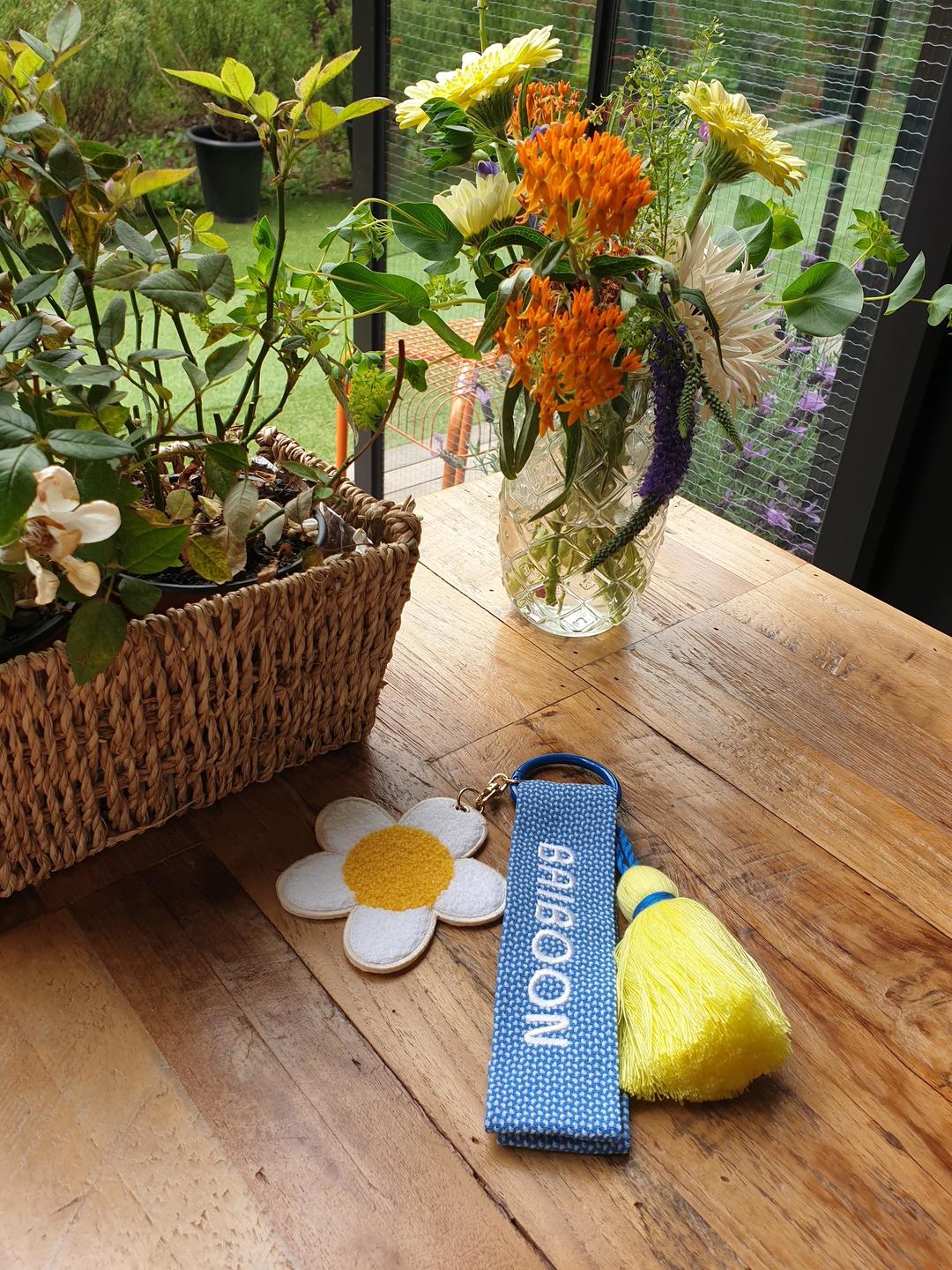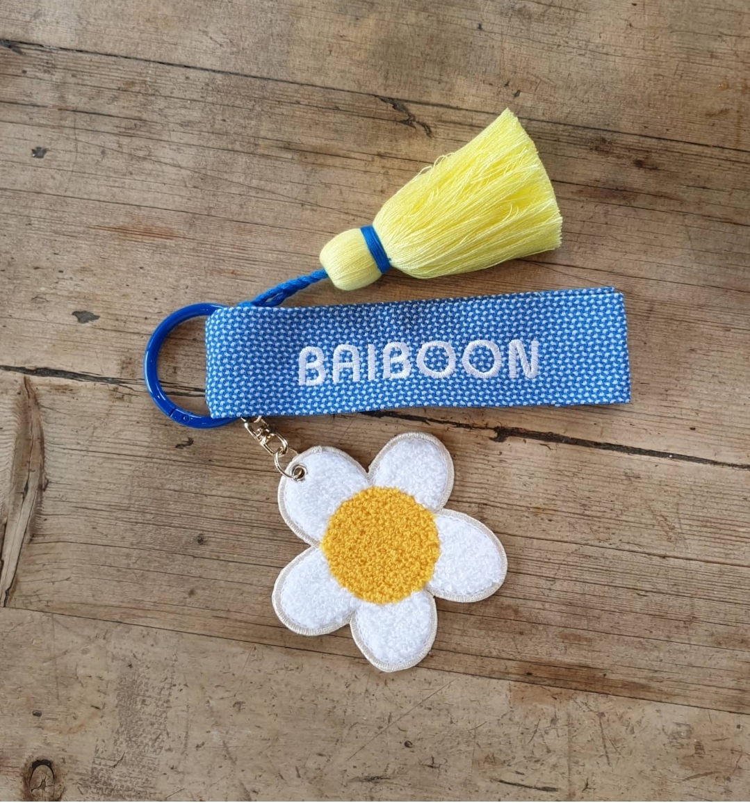 데이지 참과 노랑 태슬, 파랑 끈이