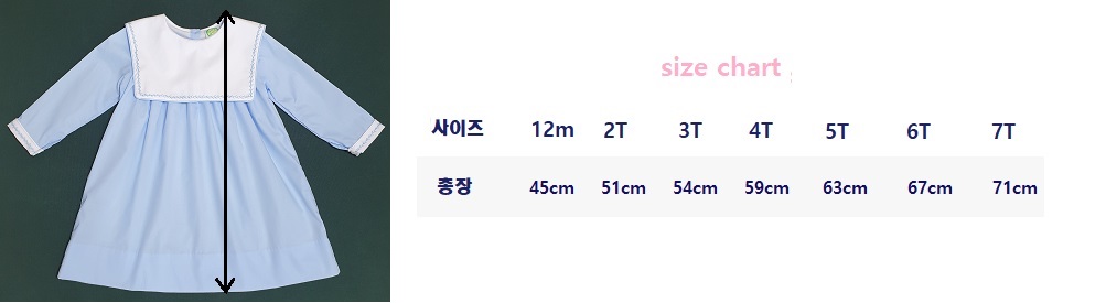 사이즈 - 12M(12개월), 2T(2세) , 3T(3세) , 4T(4세) , 5T(5세) , 6T(6세) , 7T(7세)