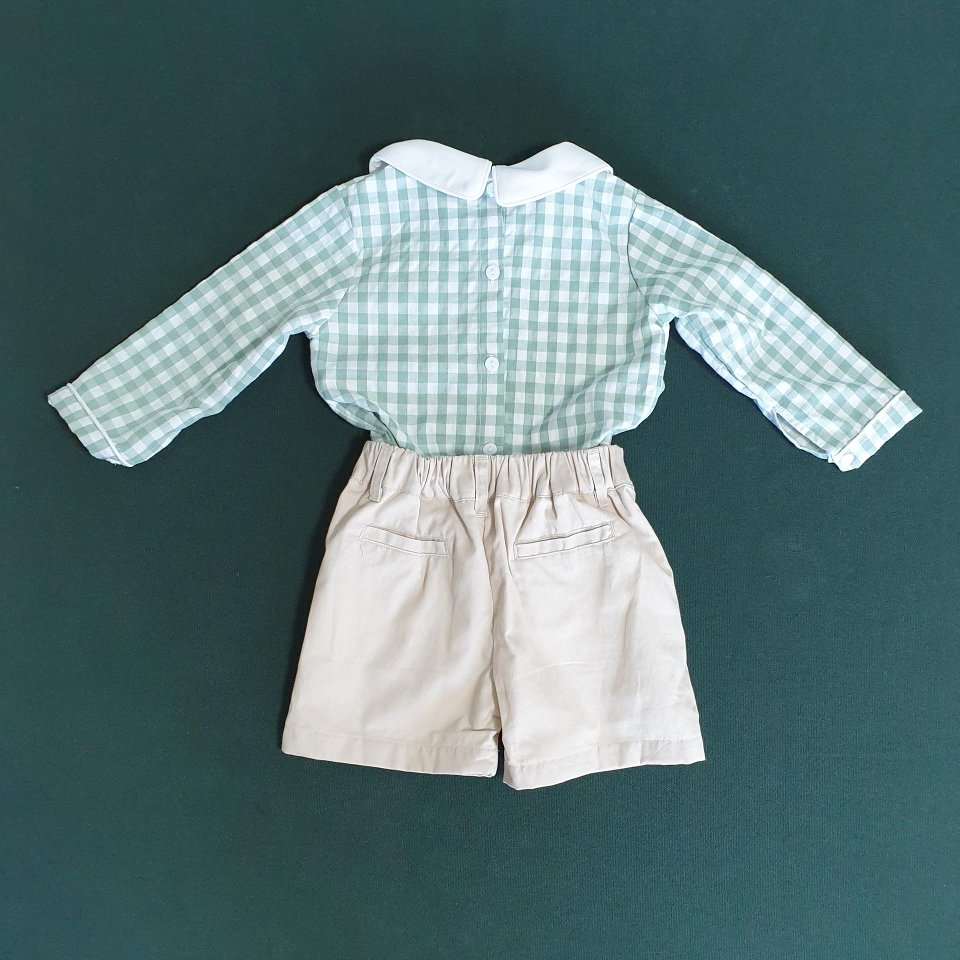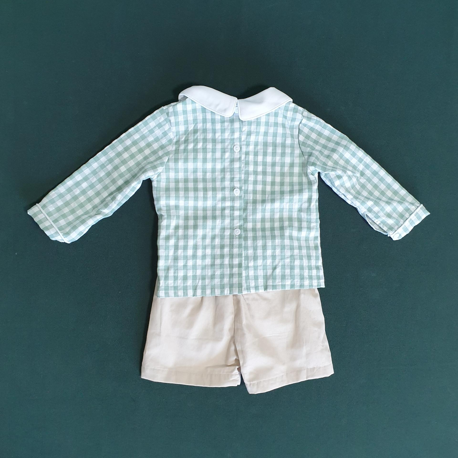 상의 카라와 반바지 하단에는 우리 아이만을 위한 이니셜을 새길 수 있는 옵션을 추가하실 수 있습니다.