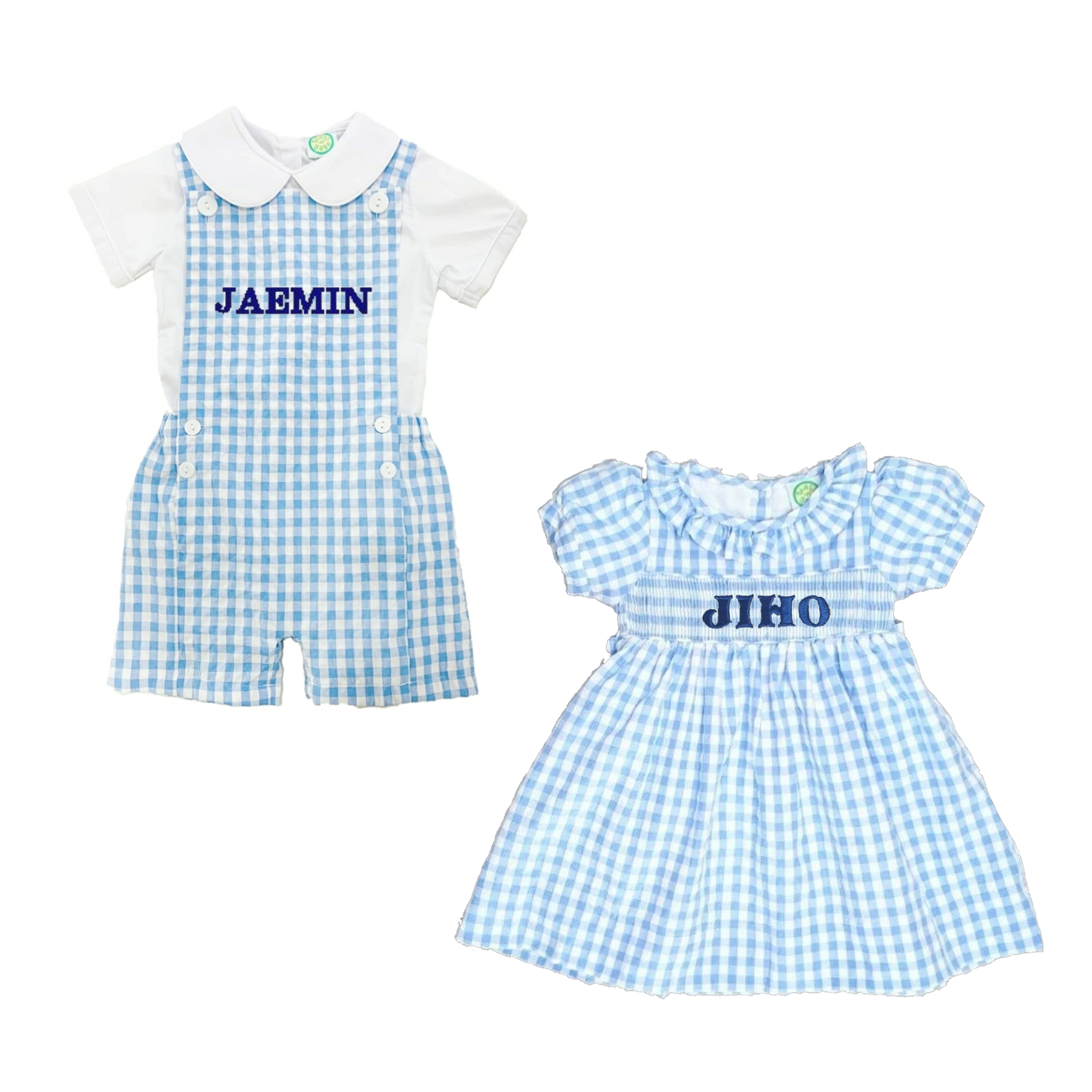 *Blue gingham Dress 제품과 예쁜 남매룩, 쌍둥이룩을 완성할 수 있습니다.