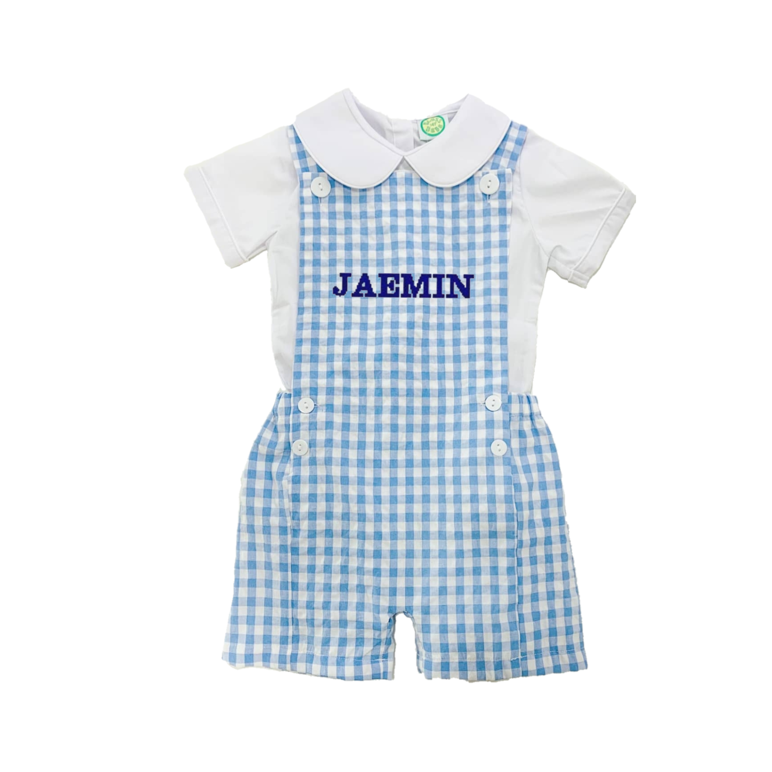 도톰한 시어서커 원단의 제품으로 가슴 부분에 아이의 이름 혹은 태명, 애칭 등을 수 놓으면 세상에 하나 뿐인 우리 아이만을 위한 꼬까옷이 완성됩니다 ^^