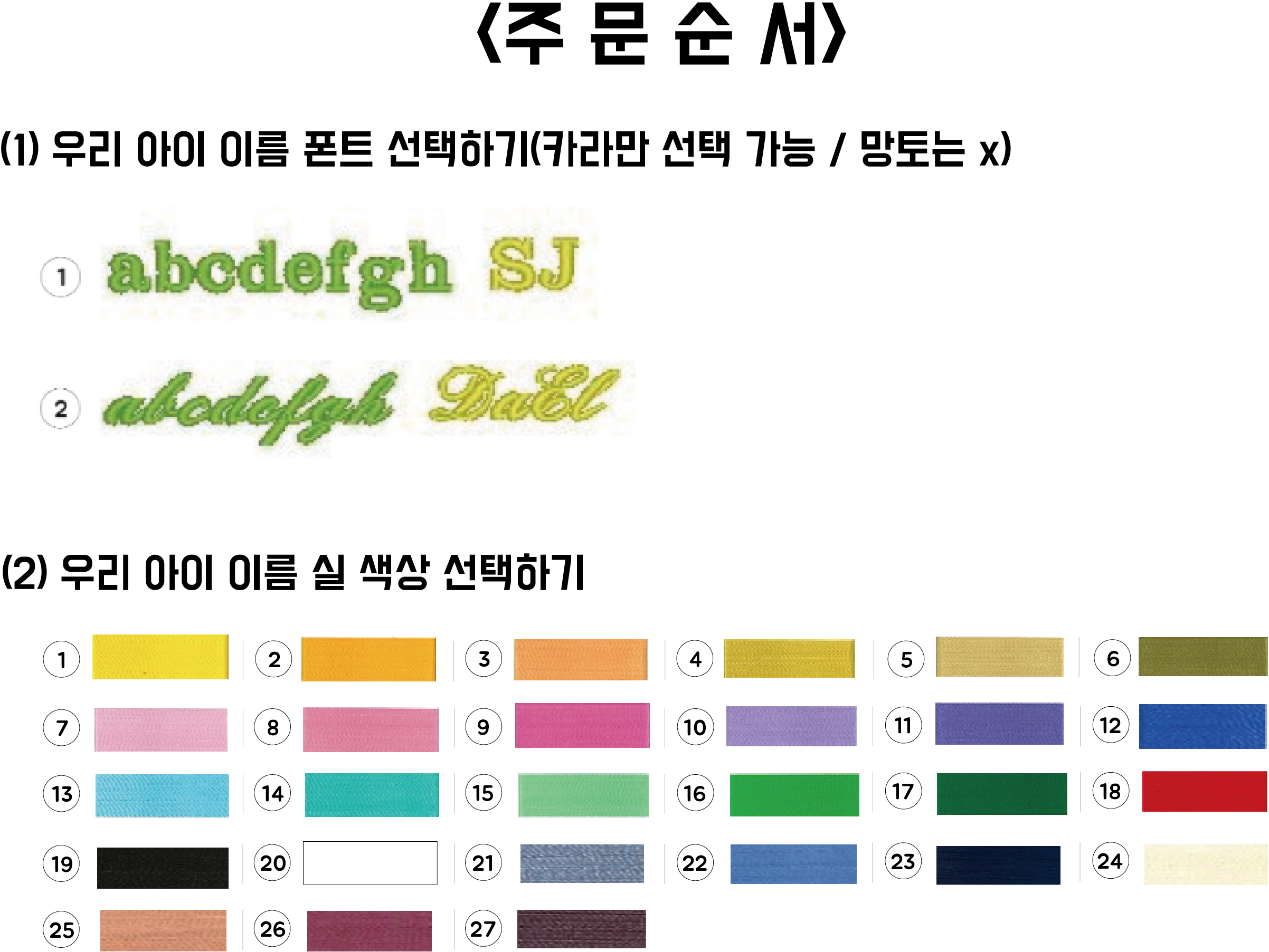 자수가 들어가는 있는 모든 부분은 100% 핸드메이드로 제작되기 때문에 모든 제품이 각기 조금씩 모양이 다를 수 있습니다. (이름 자수 제외)