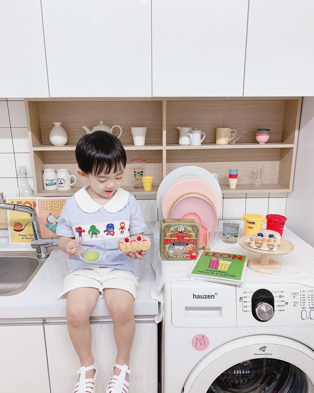 * 사진 속 아이는 98cm,16.7kg로 5T를 착용했어요,