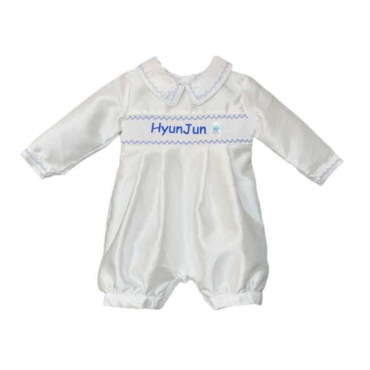 가슴쪽 스모크 부분에 아이의 이름 혹은 태명, 애칭 등을 수 놓으면 세상에 하나 뿐인 우리 아이만을 위한 꼬까옷이 완성됩니다 ^^