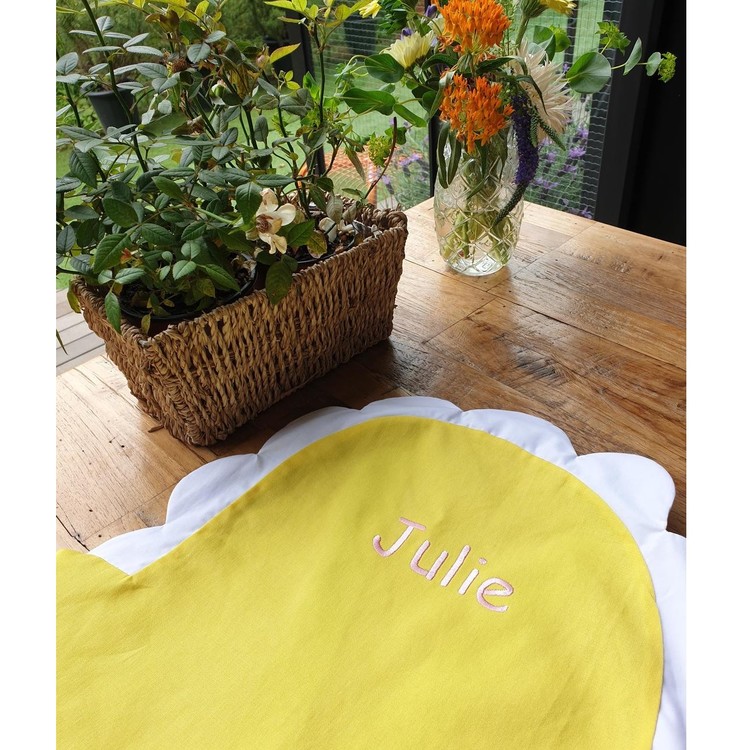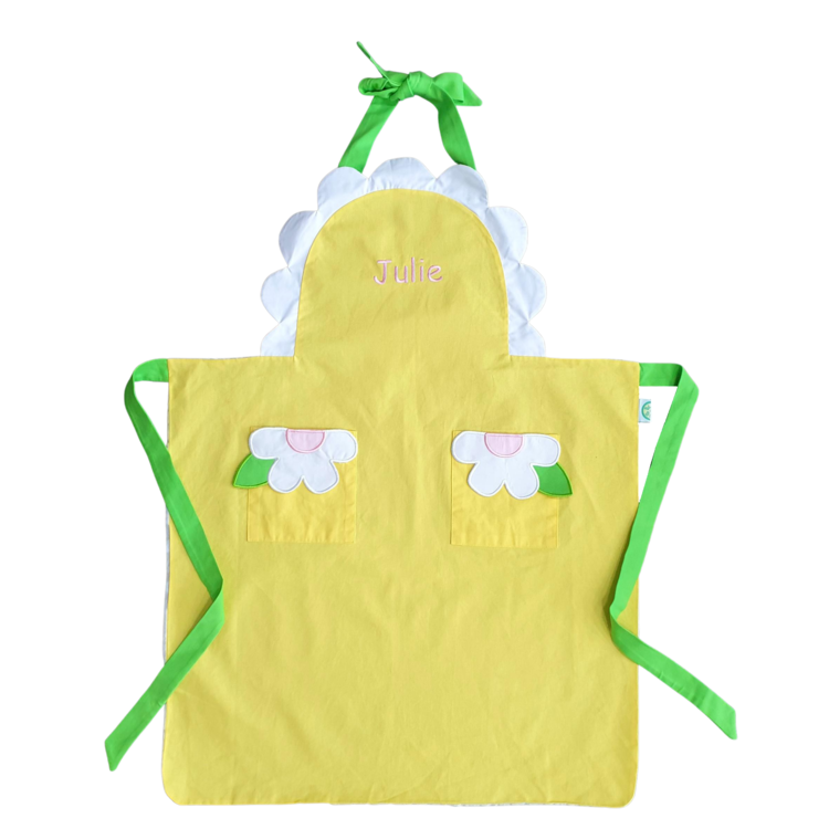 꽃잎 모양은 모두 손으로 제작하였으며 앞치마 뒤에도 한겹 덧대어 더욱 깔끔하게 마감하였습니다.