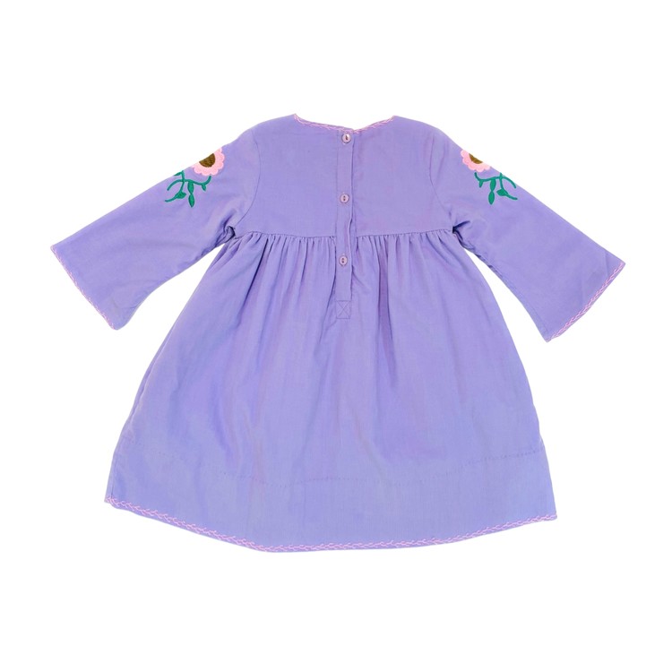 라벤더색 코듀로이 패브릭에 사랑스러운 꽃자수가 수 놓아져 있는 드레스입니다.