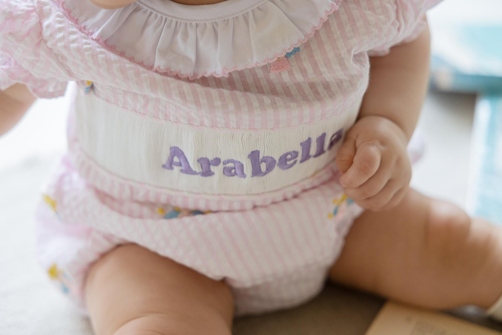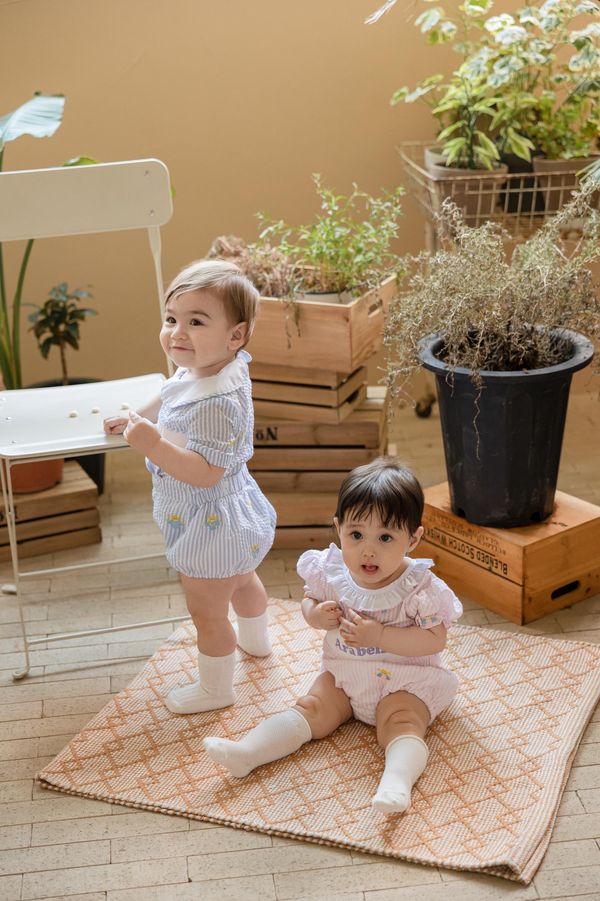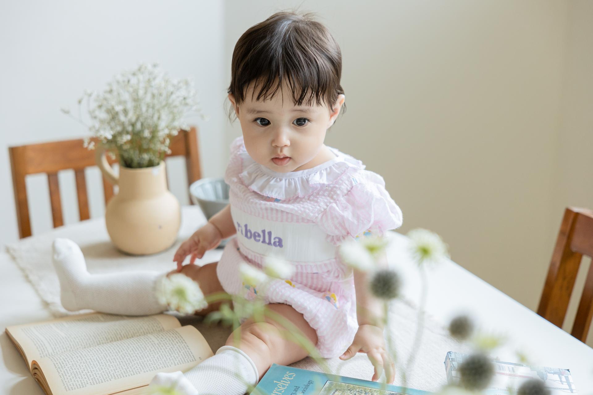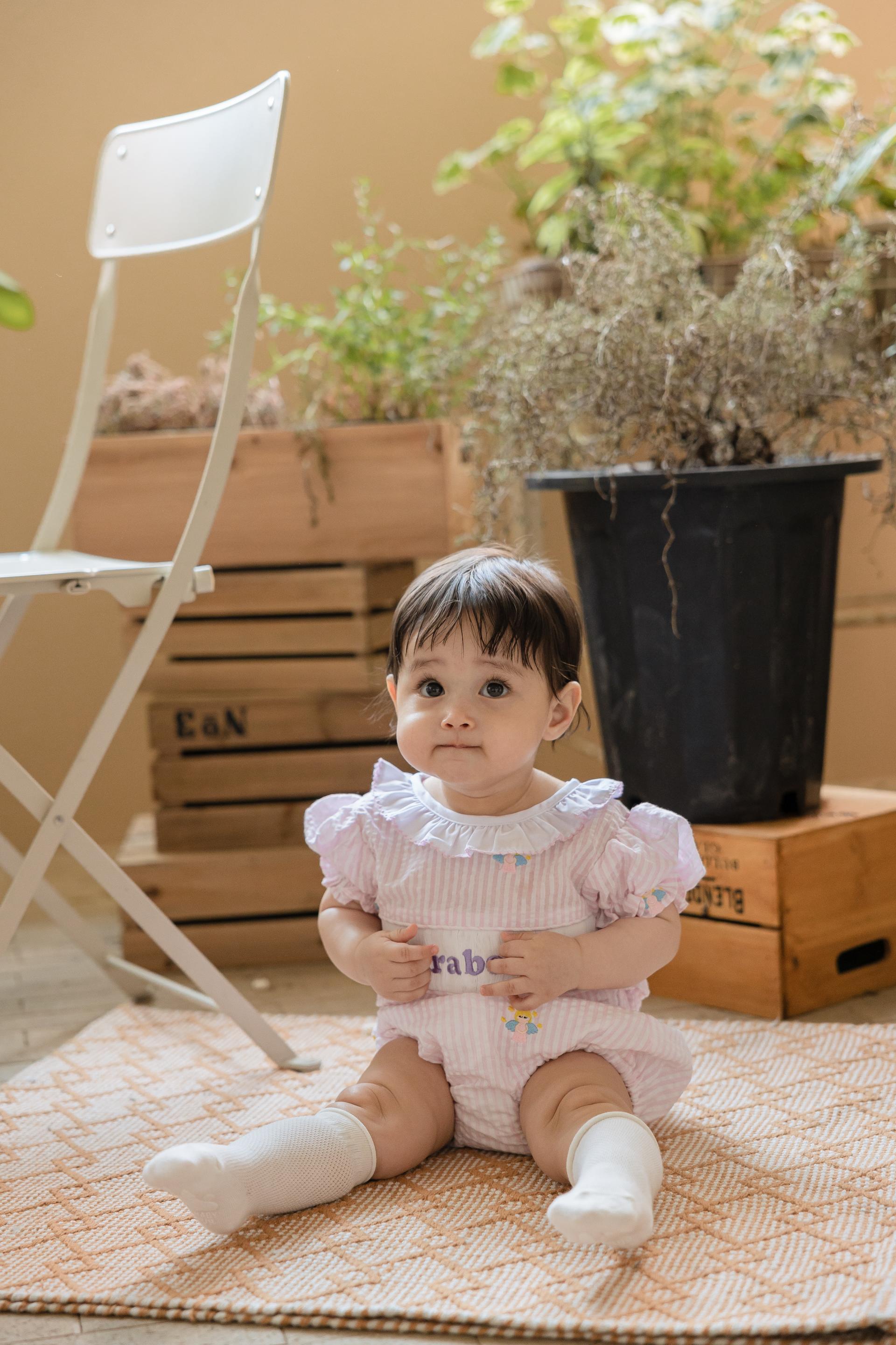 시원한 시어서커 소재이며, 핑크 스트라이프 패브릭에 사랑스러운 핑크 천사들이 자수 되어 있습니다. 상의와 하의를 잇는 단추가 있어 움직여도 윗옷이 빠지지 않으며, 단추를 채우지 않고 입히면 원피스처럼 보이는 제품입니다. 상의 가슴 부분인 하얀 스모크 부분에 아이의 이름 혹은 태명, 애칭 등을 수 놓으면 세상에 하나 뿐인 우리 아이만을 위한 꼬까옷이 완성됩니다 ^^